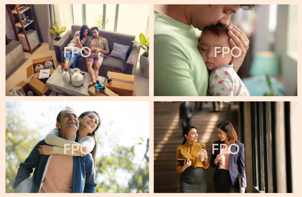 We use images to represent human contexts such as serious situations, crises, relationships, emotions, care, moments, actions, wellness, touch, communication and more.