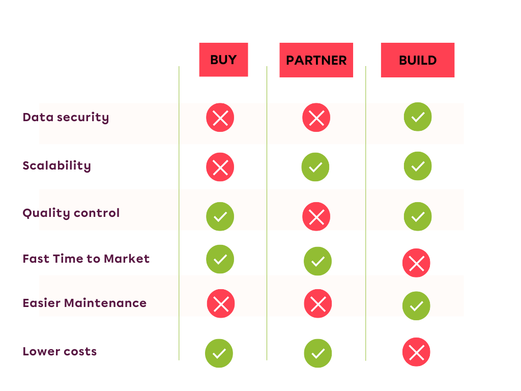 It is essential to acknowledge that by making a build decision, we would have to solve the following product and engineering challenges: