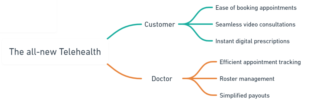 Our vision for the new and distinctive Telehealth experience was to enhance the entire customer journey, from selecting a doctor to video consultations to obtaining the doctor's prescription. We aimed to provide a seamless onboarding and offboarding process for doctors, along with efficient appointment tracking, roster management, and payouts.