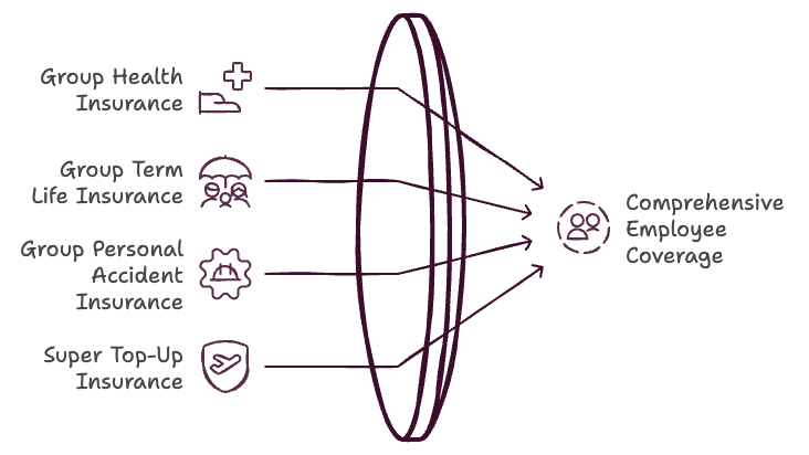 Large Corporations: Larger organisations may opt for customised, comprehensive insurance schemes that offer additional benefits like super top-ups, critical illness riders, and wellness programs. Such detailed plans support retention and provide robust protection for all employees, strengthening the company’s brand as a desirable place to work.