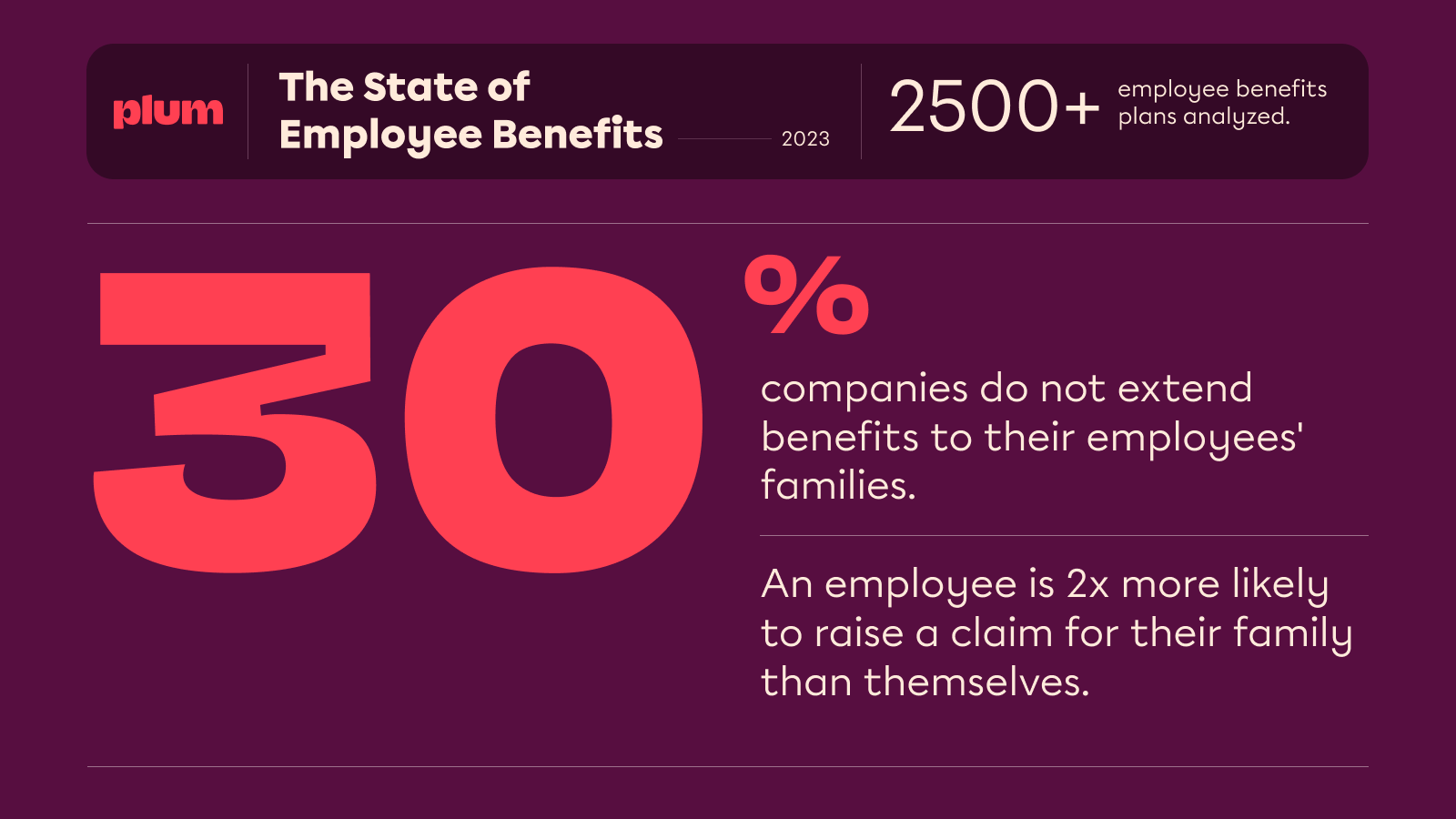 Plum goes beyond individual coverage by extending its benefits to employees' family members. Spouses, children, and even parents can be included, providing a comprehensive solution for entire households.