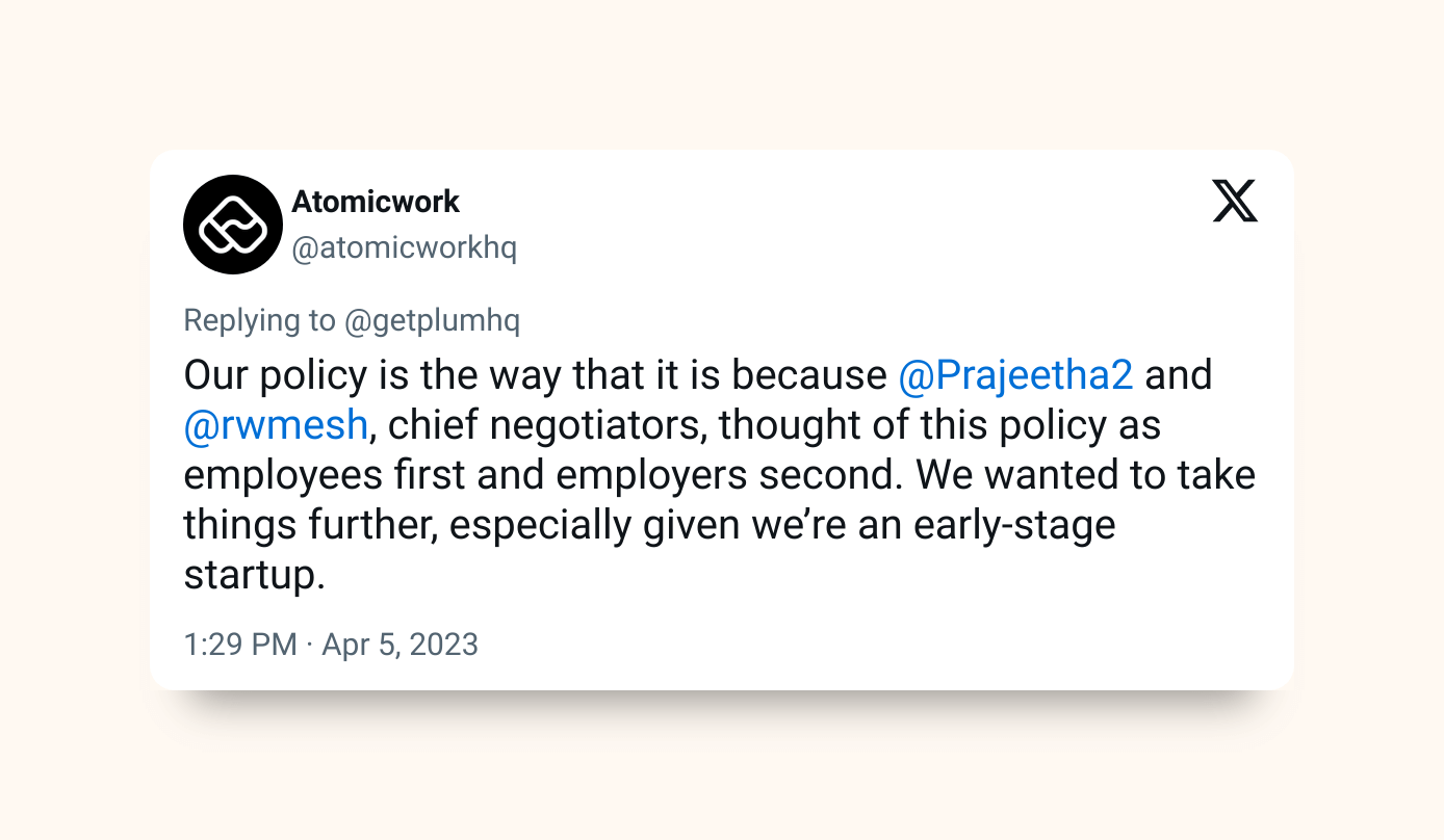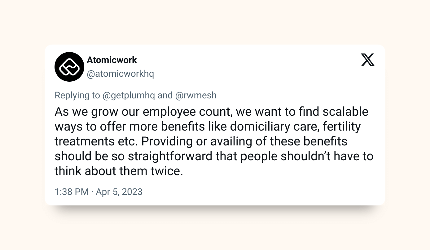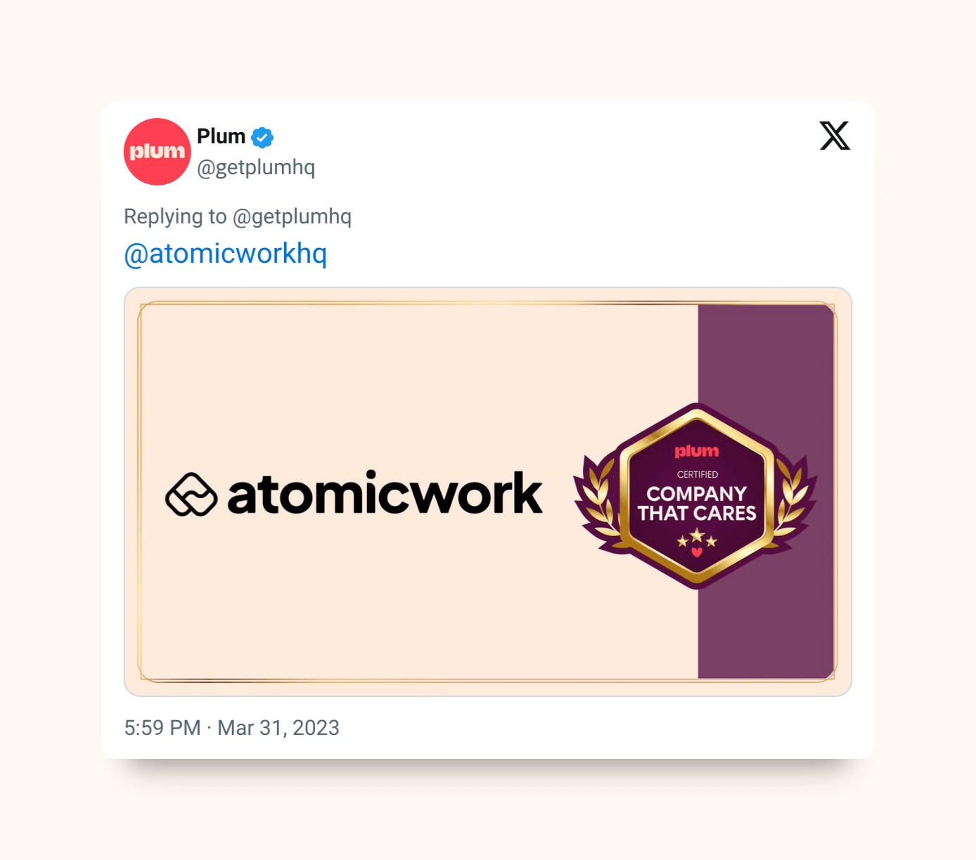 In March 2023, Plum analysed 2598 employee benefit programs for the State of Employee Benefits report and identified a set of companies that had gone above and beyond. Atomicwork was a top contender on that list.