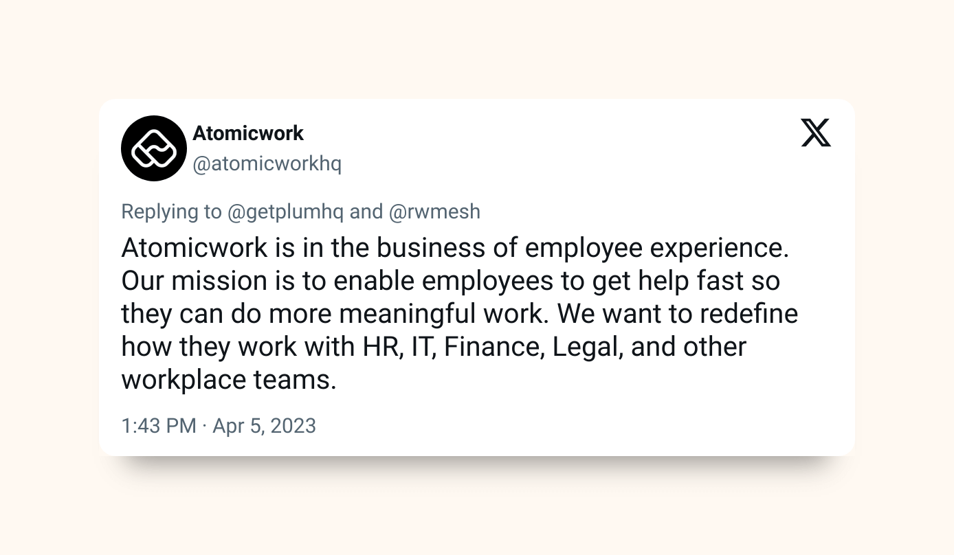 Atomicwork’s purpose is to enable leaders to provide great experiences to their employees, so employees can do more meaningful work.
