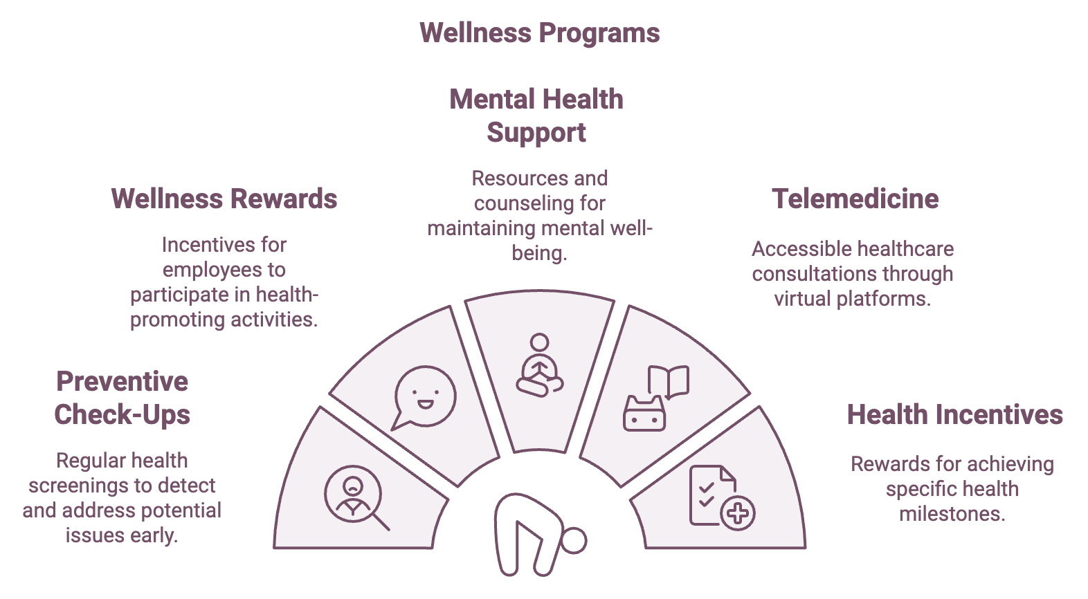 These initiatives are designed to keep employees proactive about their health, reducing long-term healthcare costs and boosting overall well-being.