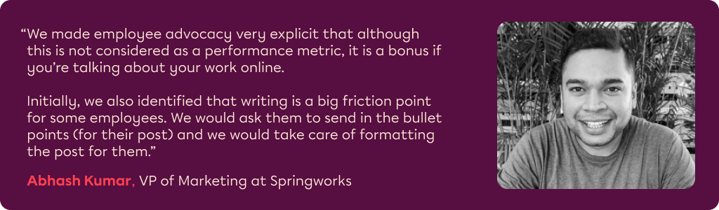 Abhash Kumar, VP of Marketing at Springworks, believes employee advocacy is a lifeline to employer brands.
